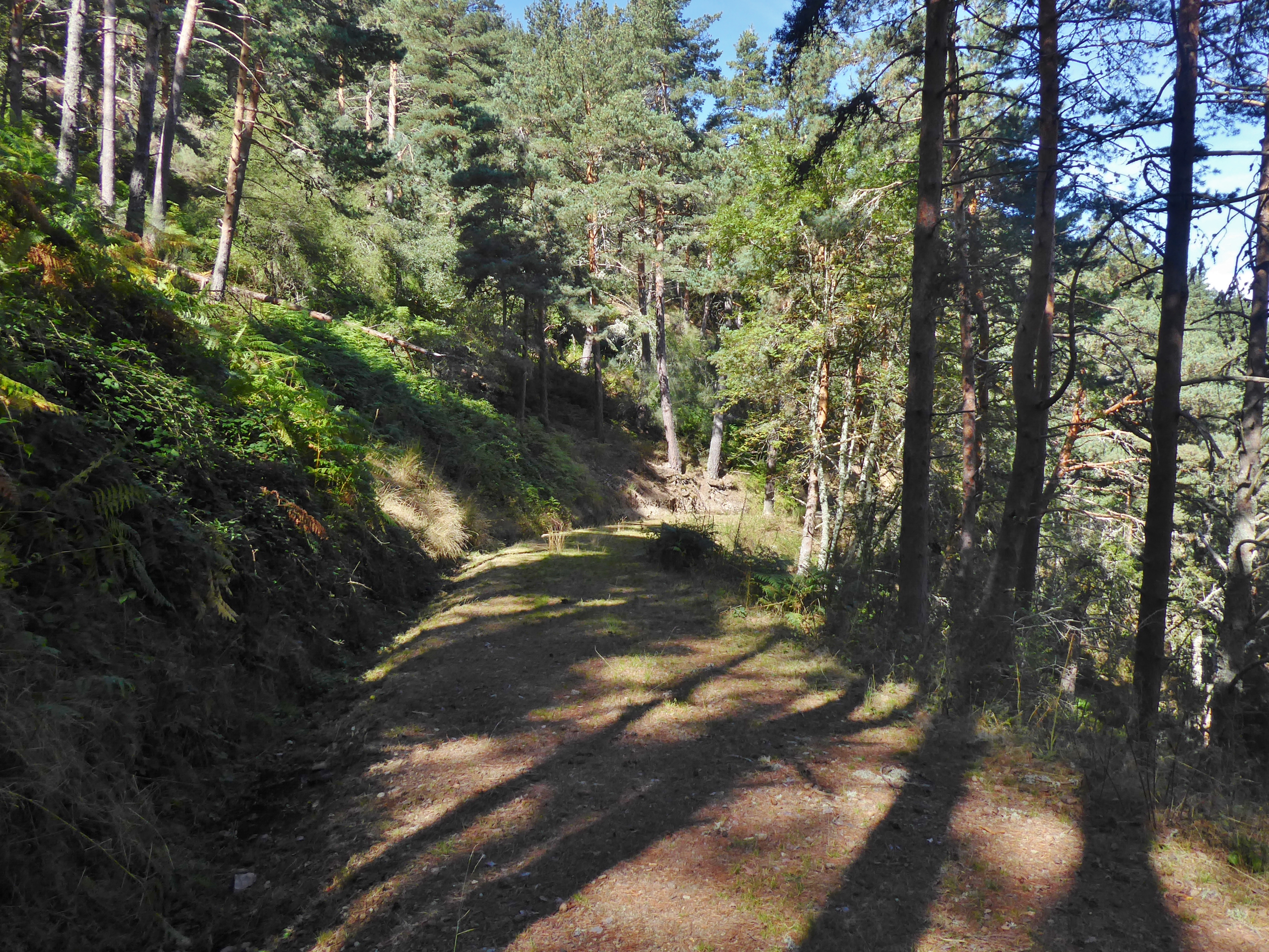arranque de una pista que atravesaba la ladera hacia la izquierda (O), por la